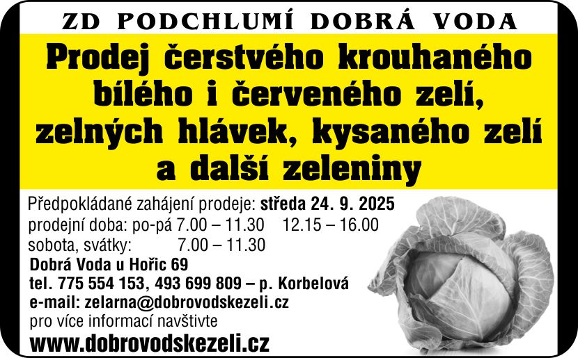 ZD Podchlumí Dobrá Voda - prodej čerstvého krouhaného zelí